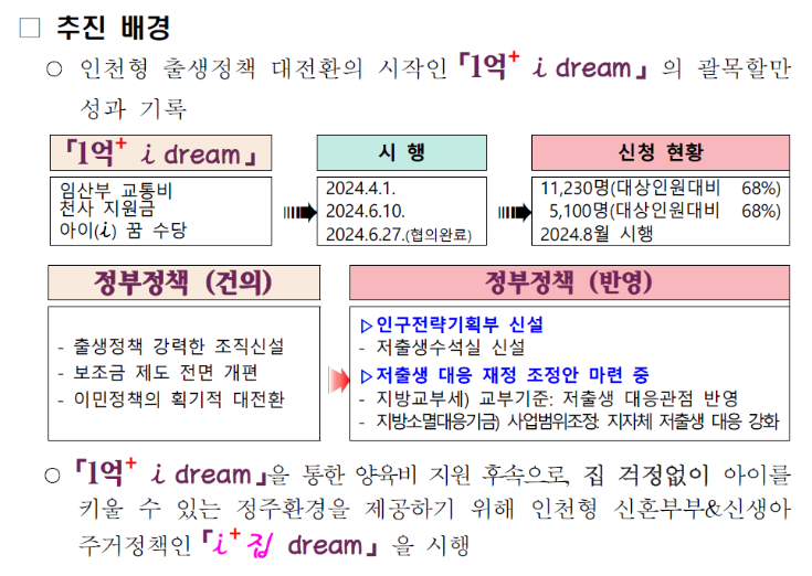천원주택 정책은 신혼부부가 초기 주거비 부담을 크게 덜고, 자녀 출산과 양육에 집중할 수 있도록 도와줍니다. 또한, 안정적인 주거 환경 제공을 통해 인천시의 저출생 문제 해결에 기여할 것으로 기대됩니다. 중앙정부와의 협력을 통해 더 나은 주거 지원 정책을 마련하고, 국가 차원의 종합 대책을 추진하고자 합니다.